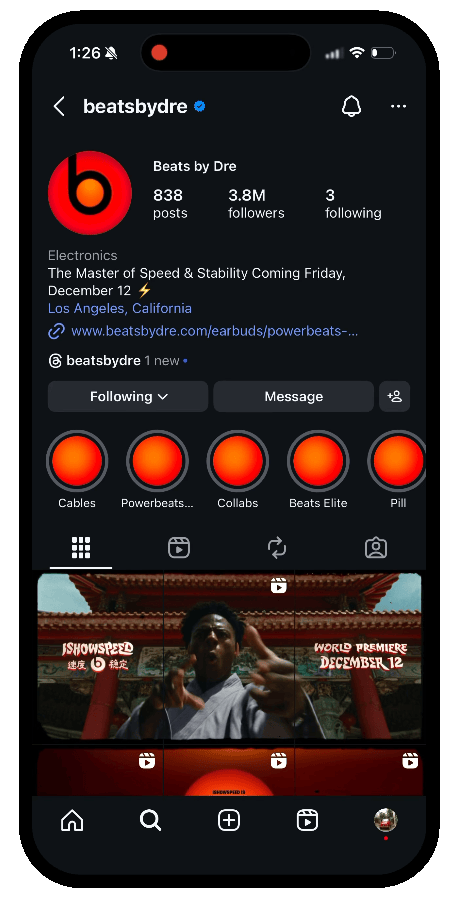 For the first time, Beats did a takeover of their social channels, including a teaser trailer that earned over 3 million organic views.